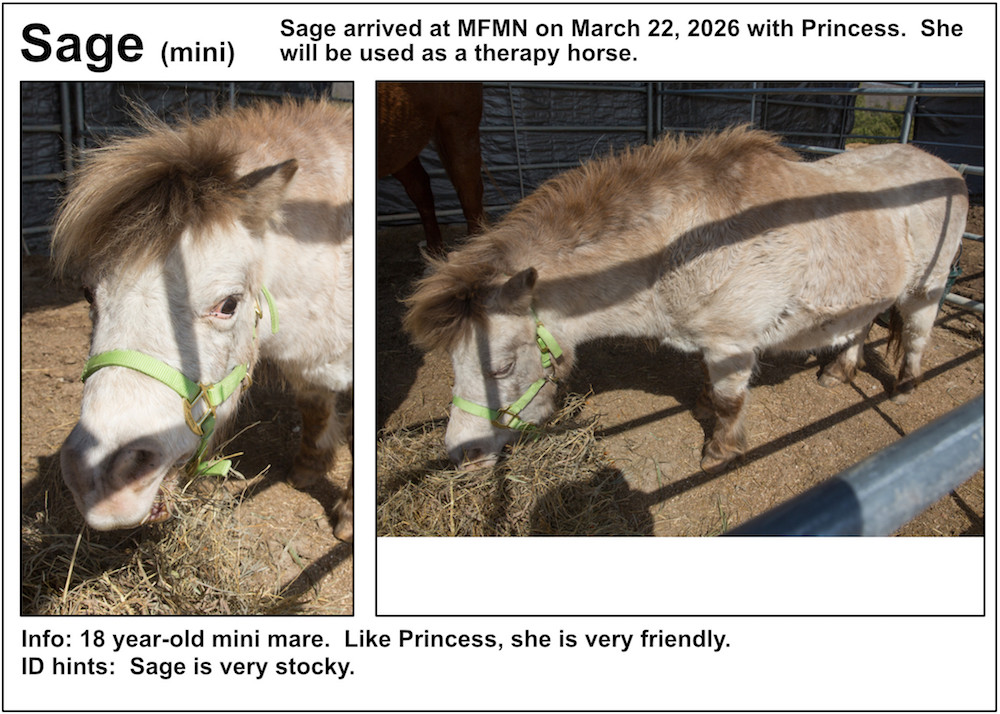 While at the rescue, some of our volunteers have encountered Internet service problems on their mobile devices, thus making our photos unavailable to them for help in identifying horses. To solve that problem, we're now making it possible to download and save all of the horse photos on this page (plus photos of some of our Rainbow Bridge horses and horses that have been adopted) directly to your mobile phone, tablet or computer via a single file transfer. By saving the photos to your device, you'll always have them available, even without Internet service.