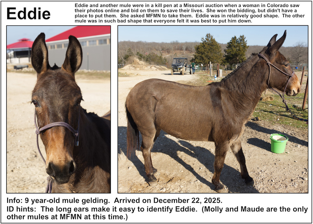 2025 arrivals prior to March 23, 2025: Agape (adopted July 2025), Brownie, Diva (RIP August 2025), Gertrude (RIP March 2025), Langley, Lydia, Maple, Missy, Opie, Sasha, Tessa and Ruby (RIP January 2025).