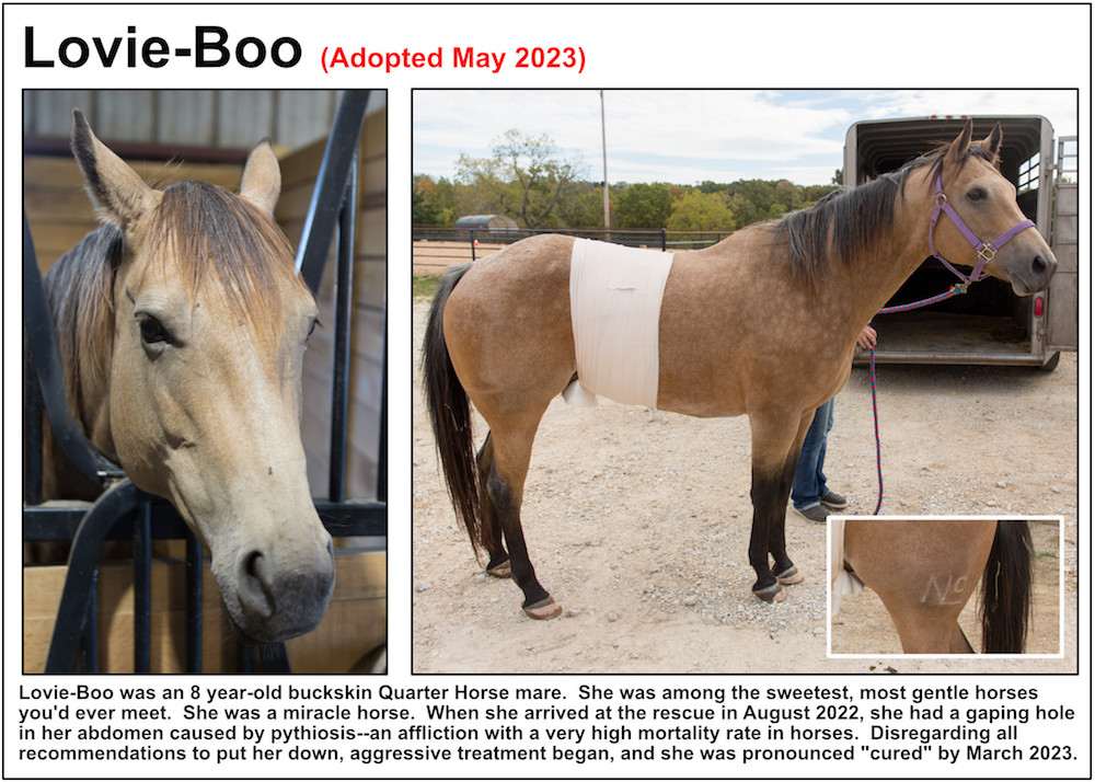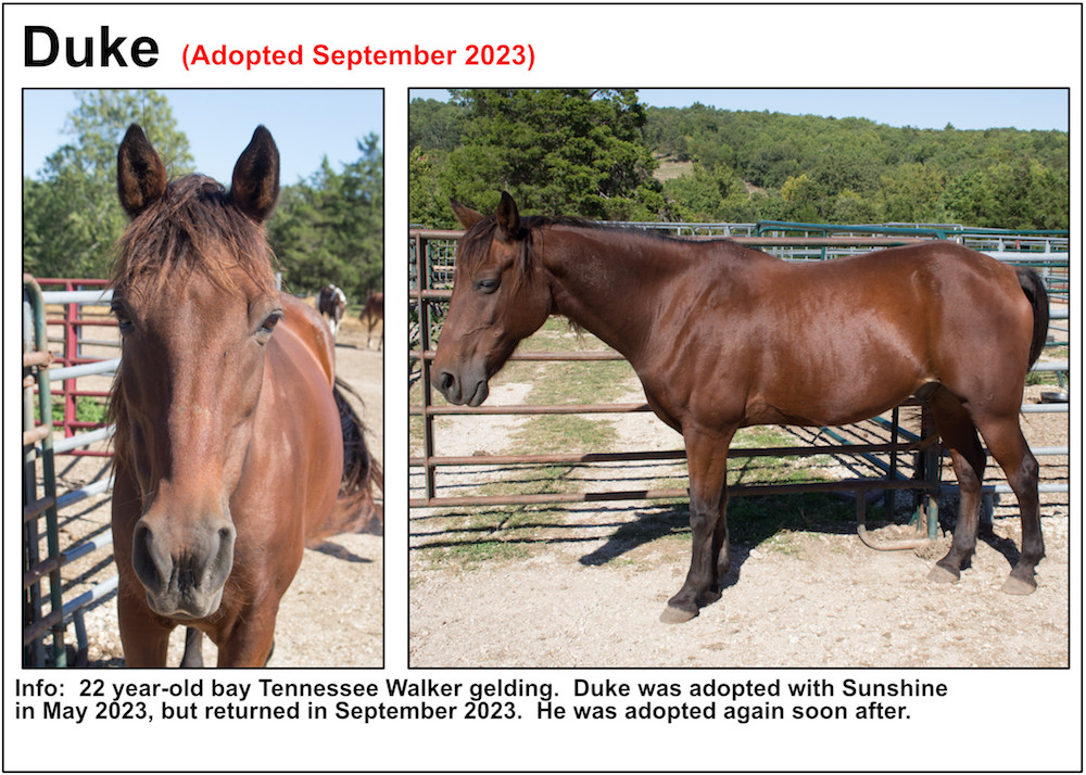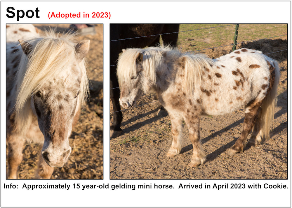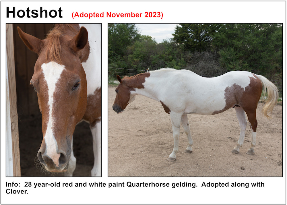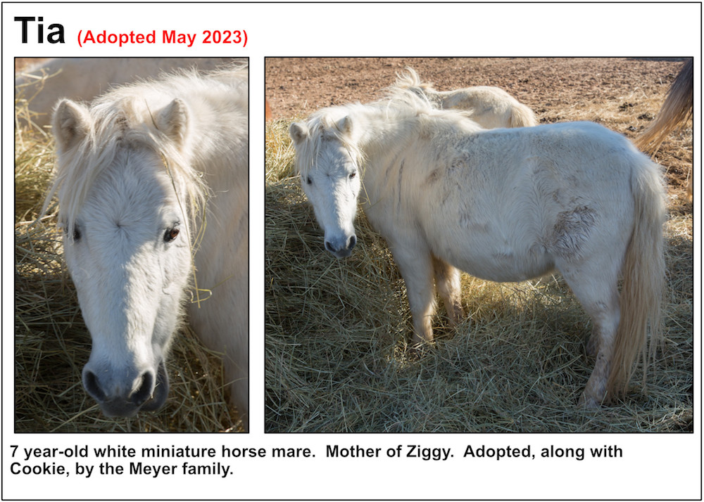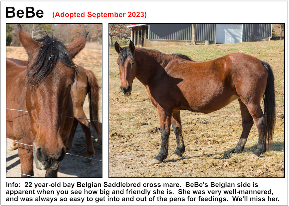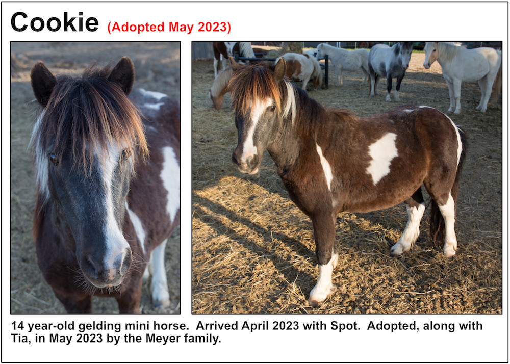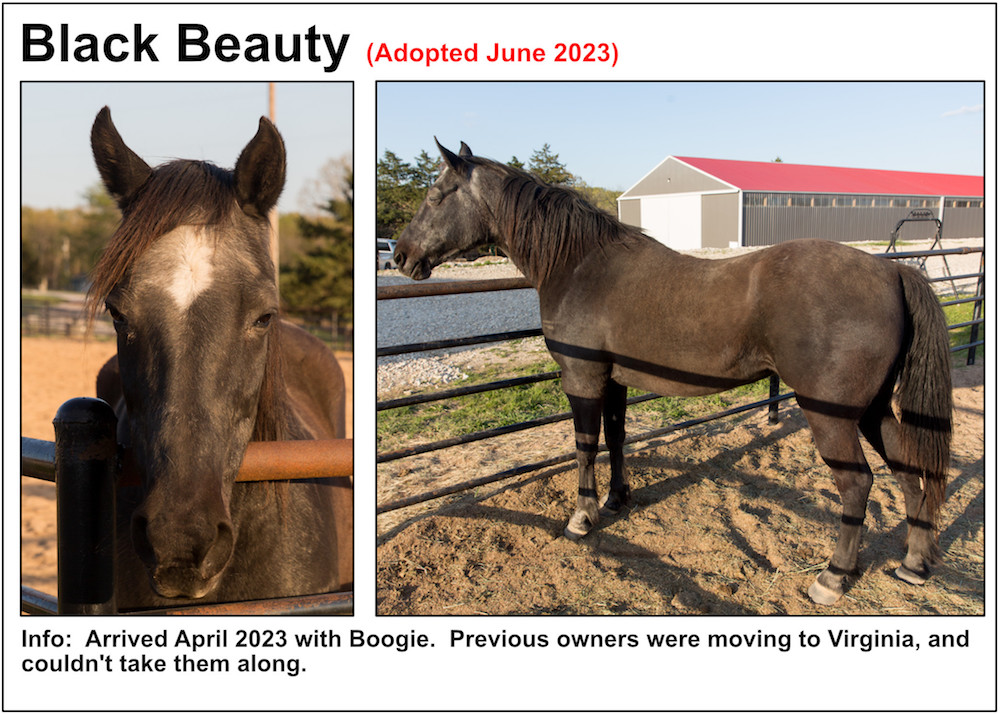 Other adopted horses, for whom photos aren't available: Dude (adopted by Dr. Bell & family)