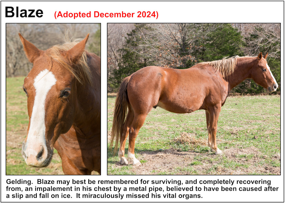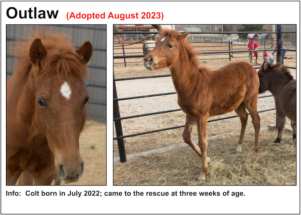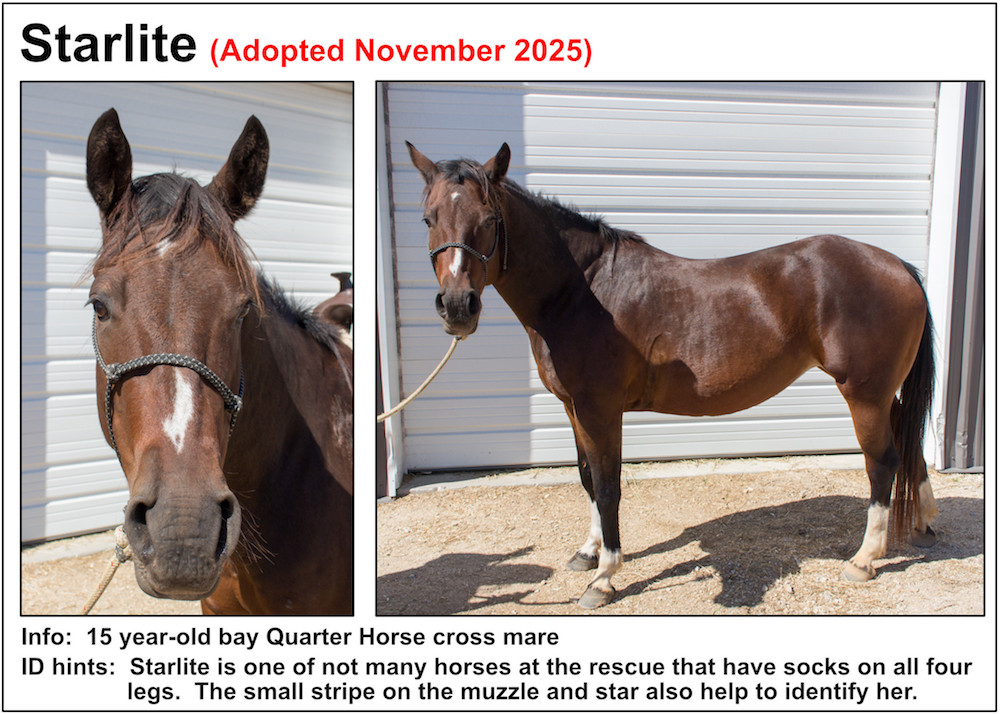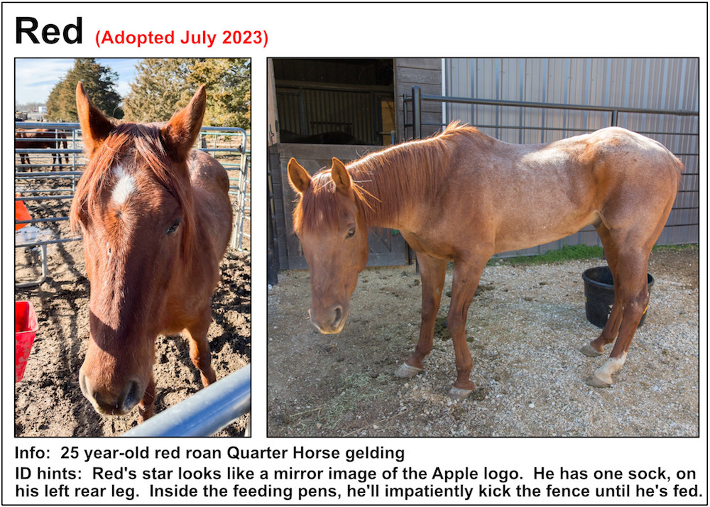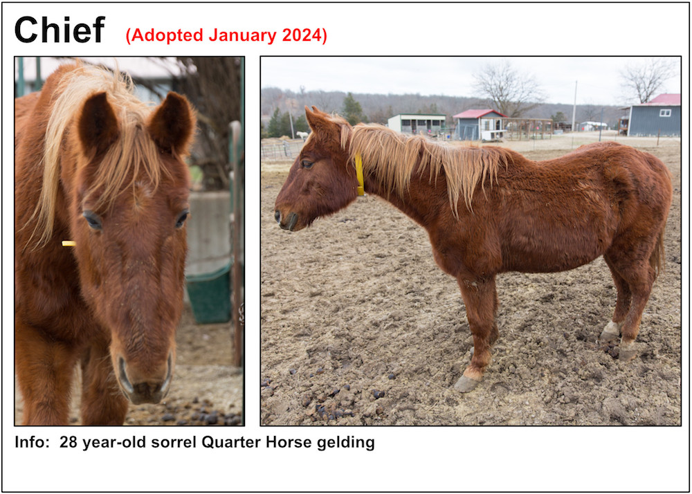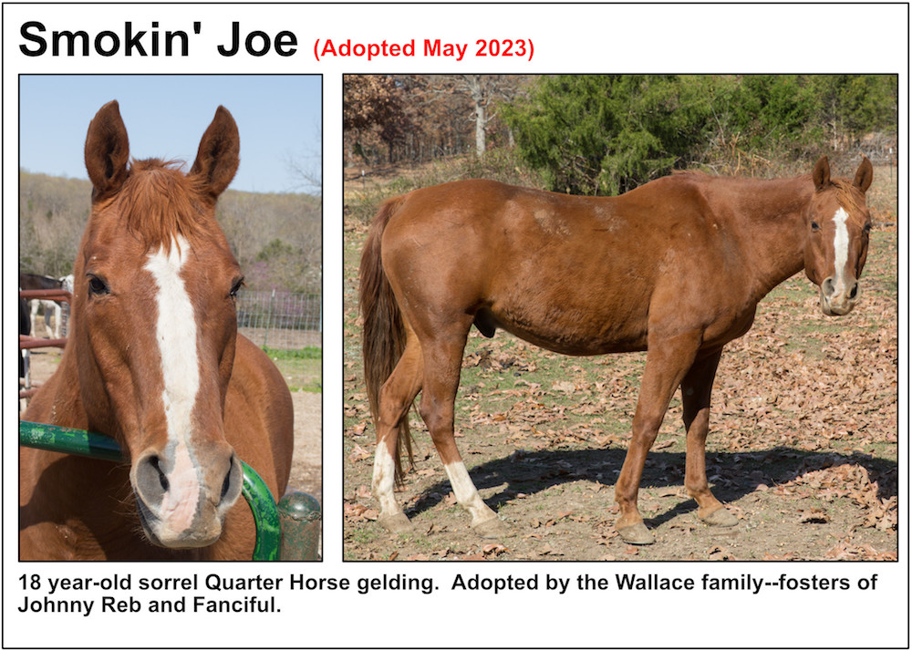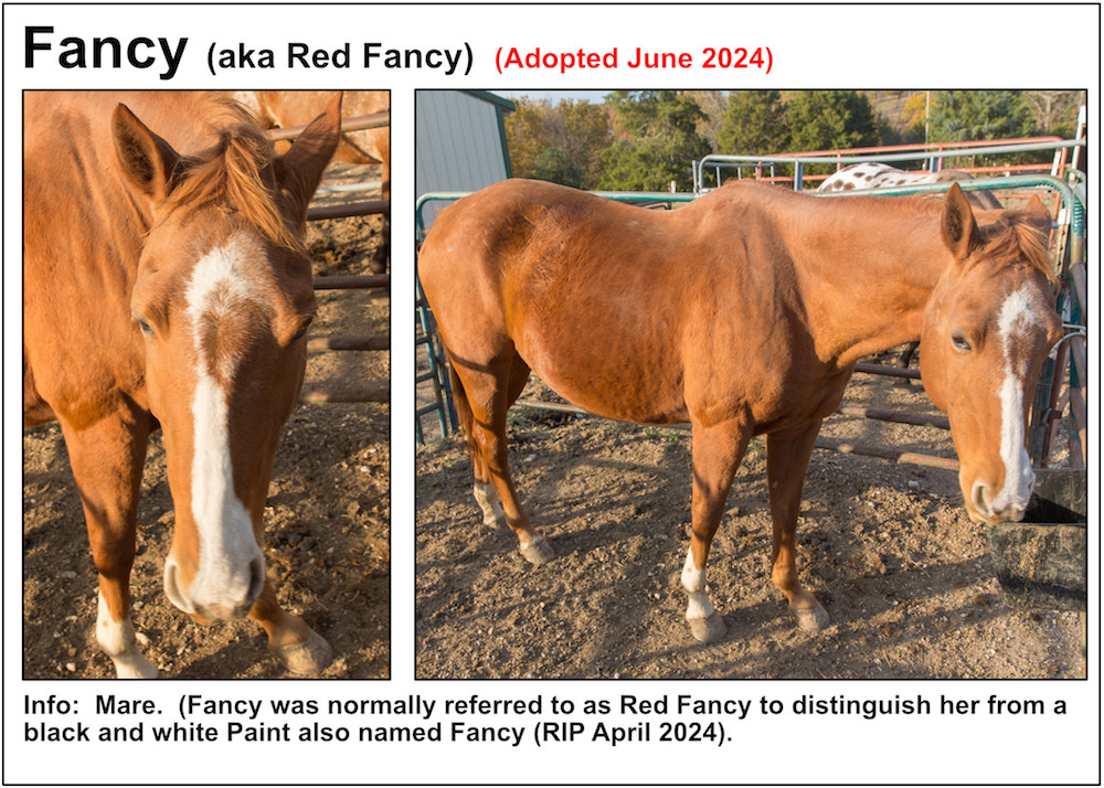 Other adopted horses, for whom photos aren't available: Dude (adopted by Dr. Bell & family)