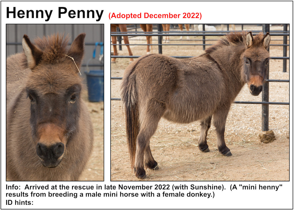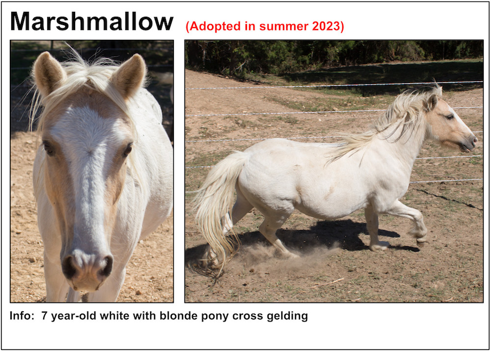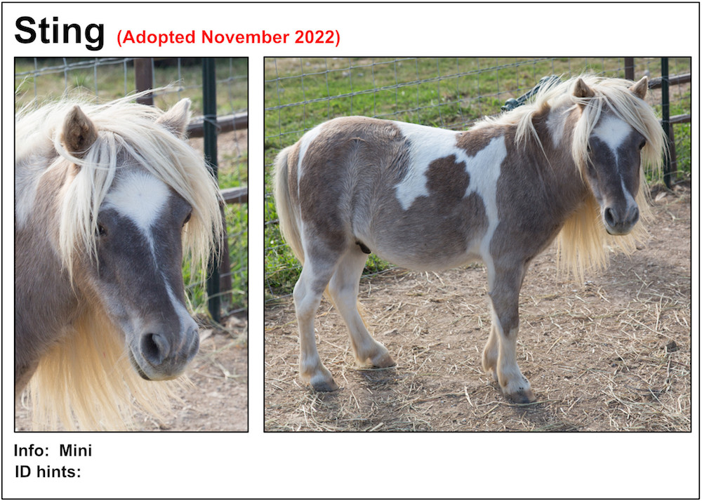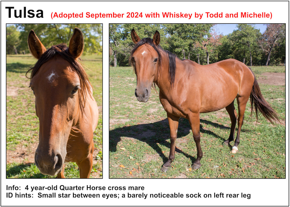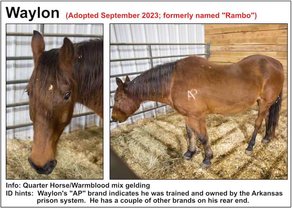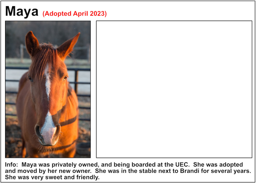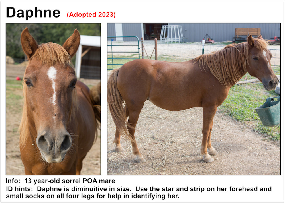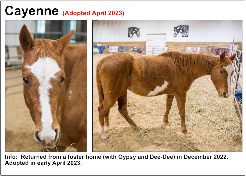 Other adopted horses, for whom photos aren't available: Dude (adopted by Dr. Bell & family)