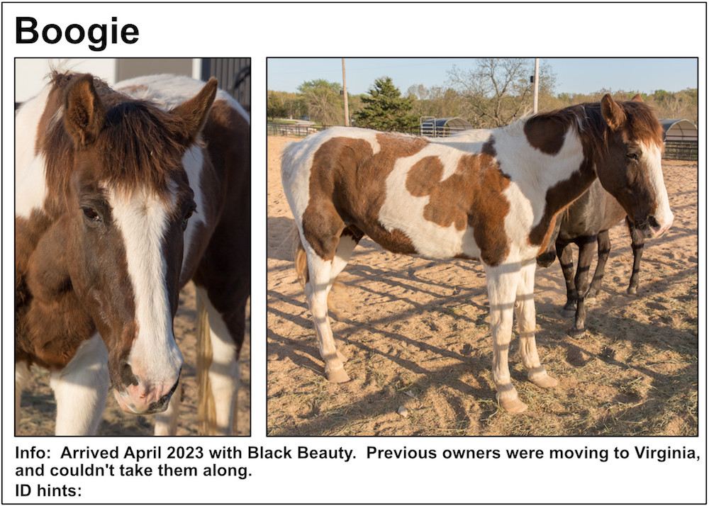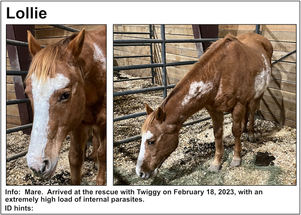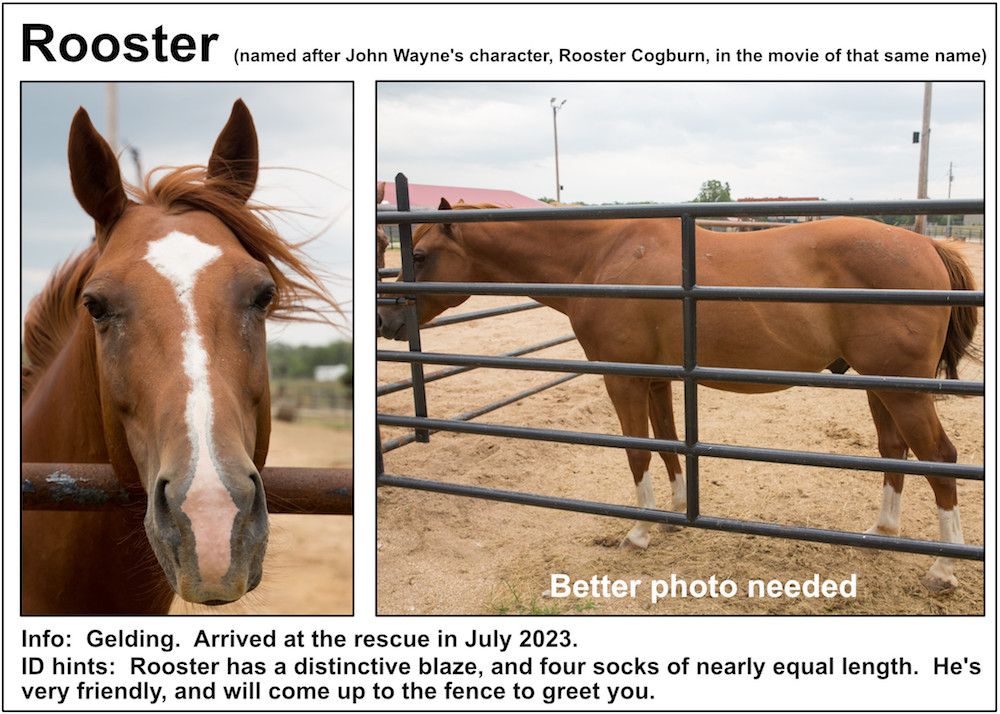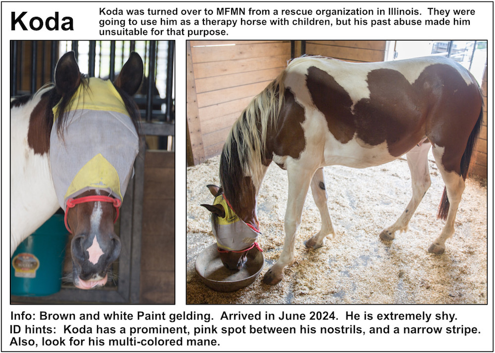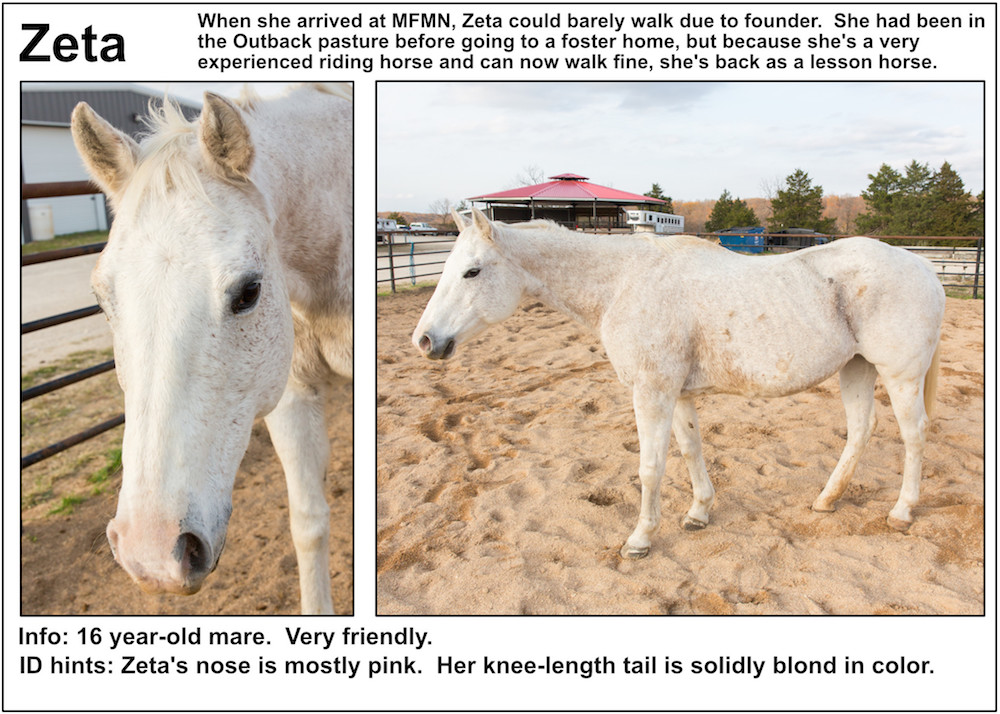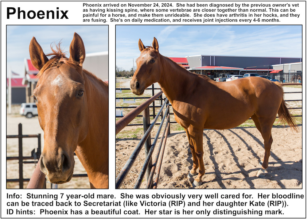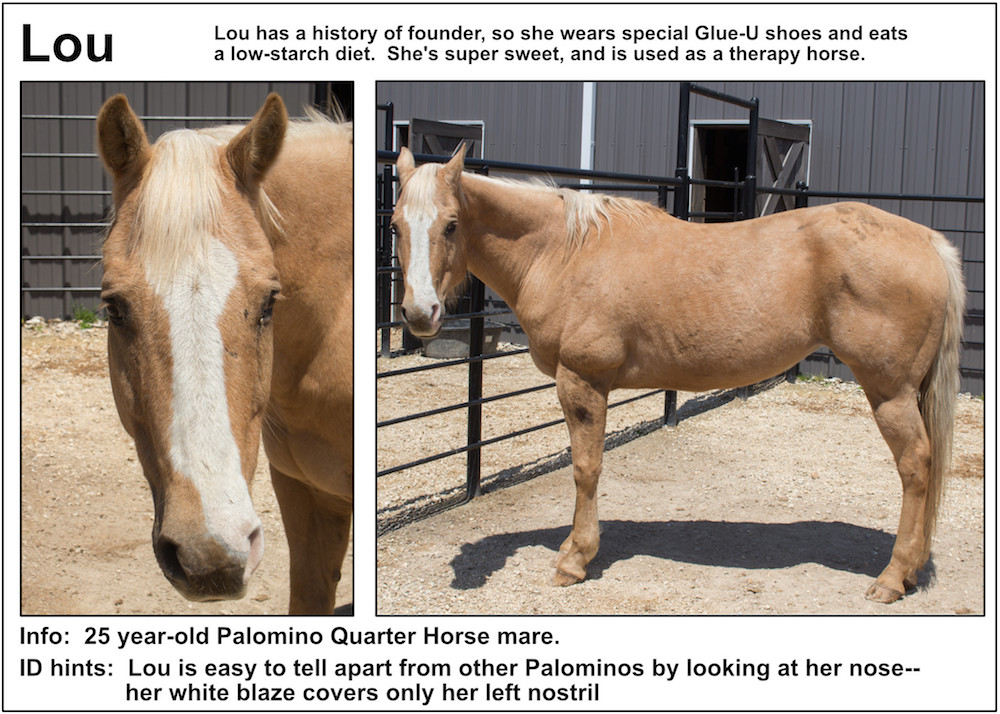 If you’re near a pasture, or are in our Unbridled Equestrian Center, and want to identify a horse within, this may be your fastest route to identification. Please be aware that these listings will almost certainly be slightly out-of-date due to horses that have just arrived or have been adopted out, as well as for horses that have been moved from from one pasture to another.